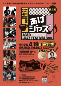 ご予約は、ageojazz@gmail.com または 080-5436-2310まで